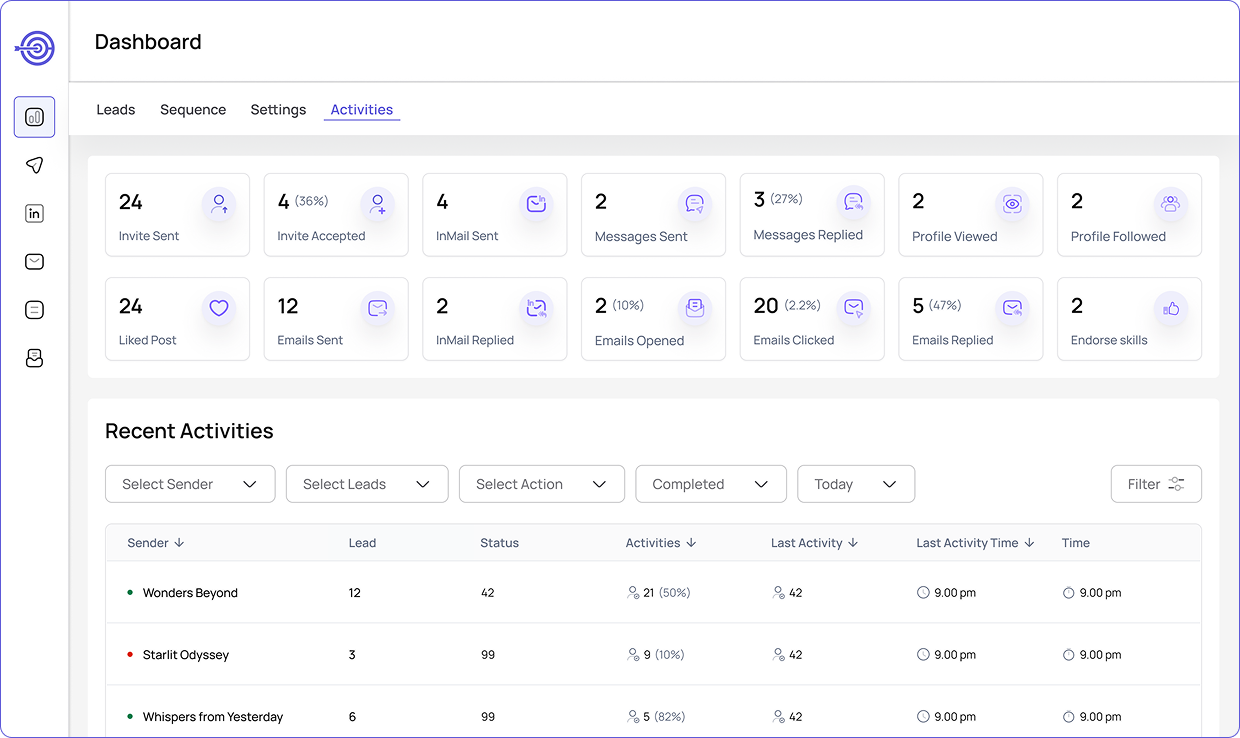 - View all LinkedIn and email replies in a single dashboard