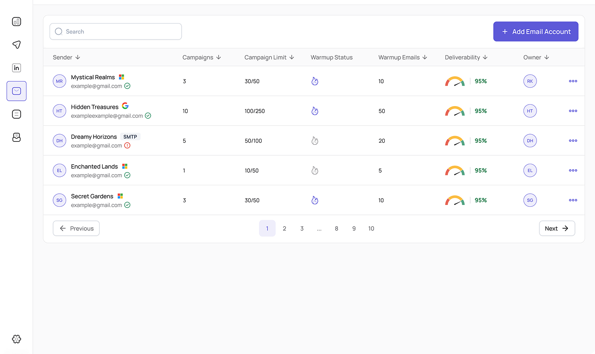 Track warmup progress, inbox placement rates, and sender health over time. Know exactly where your accounts stand before launching your next outreach campaign.